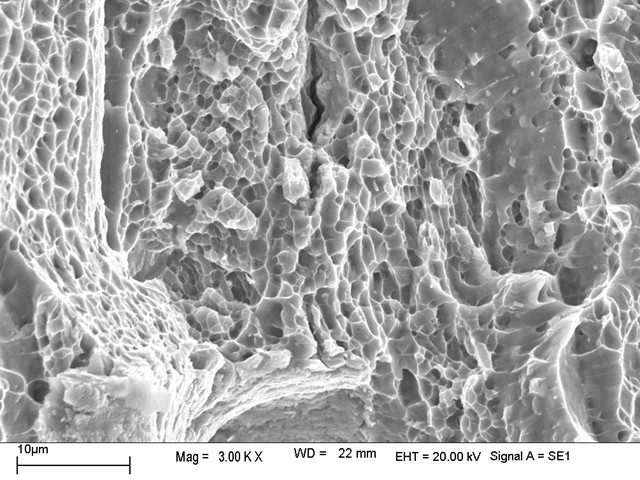 斷口上記錄著與裂紋有關的各種信息,通過對這些信息的分析,可以找出斷裂的原因及影響因素。因此,斷口分析在斷裂失效分析中占據著特殊重要的地位。可以說斷口分析是斷裂失效分析的核心,同時又是斷裂失效分析的向導,指引失效分析少走彎路。 指用肉眼、放大鏡、低倍光學顯微鏡(體視顯微鏡) ,這是斷口分析的第一步和基礎。通過宏觀觀察收集了斷口上的宏觀信息,則可初步確定斷裂的性質(脆性斷裂、韌性斷裂、疲勞斷裂、應力腐蝕斷裂等),可以分析裂源的位置和裂紋擴展方向,可以判斷冶金質量和熱處理質量等。 用顯微鏡對斷口進行高放大倍率的觀察,用金相顯微鏡及掃描電鏡的為多。斷口微觀觀察包括斷口表面的直接觀察及斷口剖面的觀察。 截取剖面要求有一定的方向,通常是用與斷口表面垂直的平面來截取(截取時注意保護斷口表面不受任何損傷),垂直于斷口表面有兩種切法。平行裂紋擴展方向截取,則可研究斷裂過程。因為在斷口的剖面上,能包含斷裂不同的各區域。垂直裂紋擴展方向截取,在一定位置的斷口削面上,可研究某一特定位置的區域。